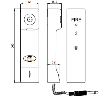 外形尺寸 | 手提式電話分機為:200mm×50mm×38.3mm 固定式電話分機為:206mm×56mm×51.5mm |